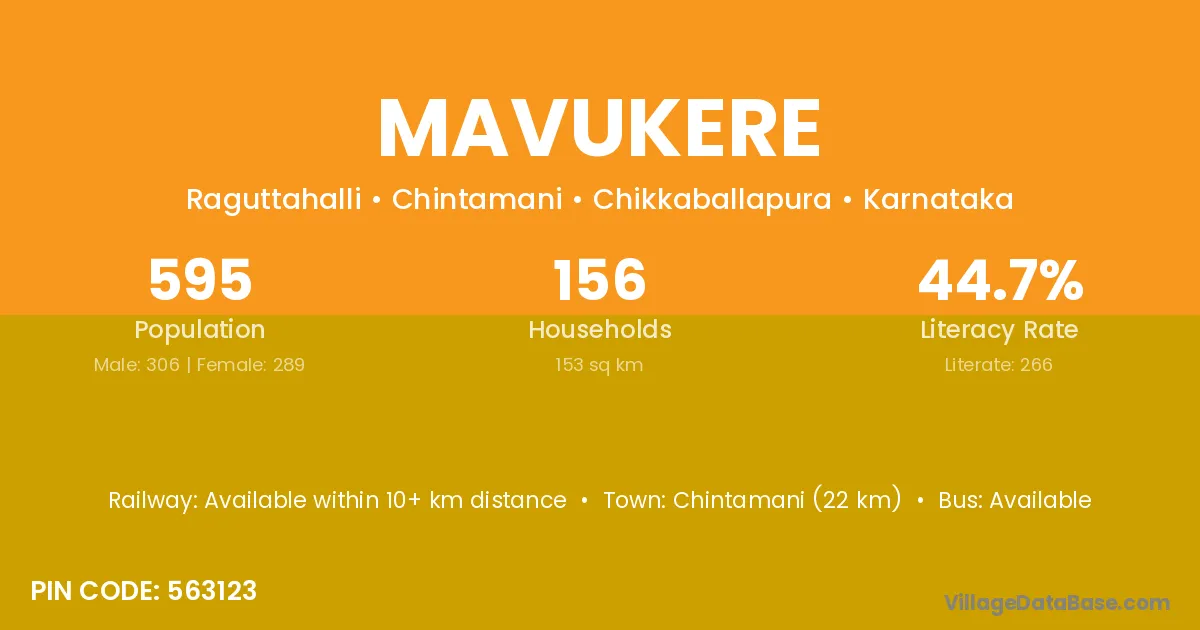 Chintamani (22 km) is the nearest town to Mavukere village for major economic activities and is located approximately 22 km away.