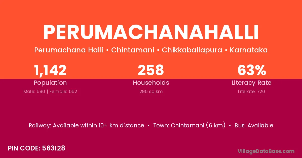 Chintamani (6 km) is the nearest town to Perumachanahalli village for major economic activities and is located approximately 6 km away.