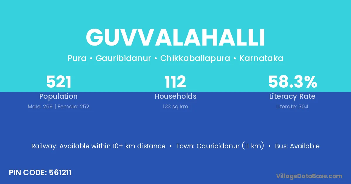 Guvvalahalli village has a total population of 521 people, of which 269 are males and 252 are females.
