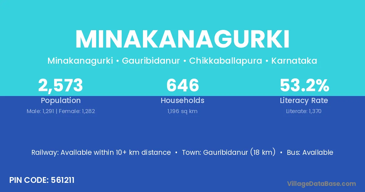 Gauribidanur (18 km) is the nearest town to Minakanagurki village for major economic activities and is located approximately 18 km away.