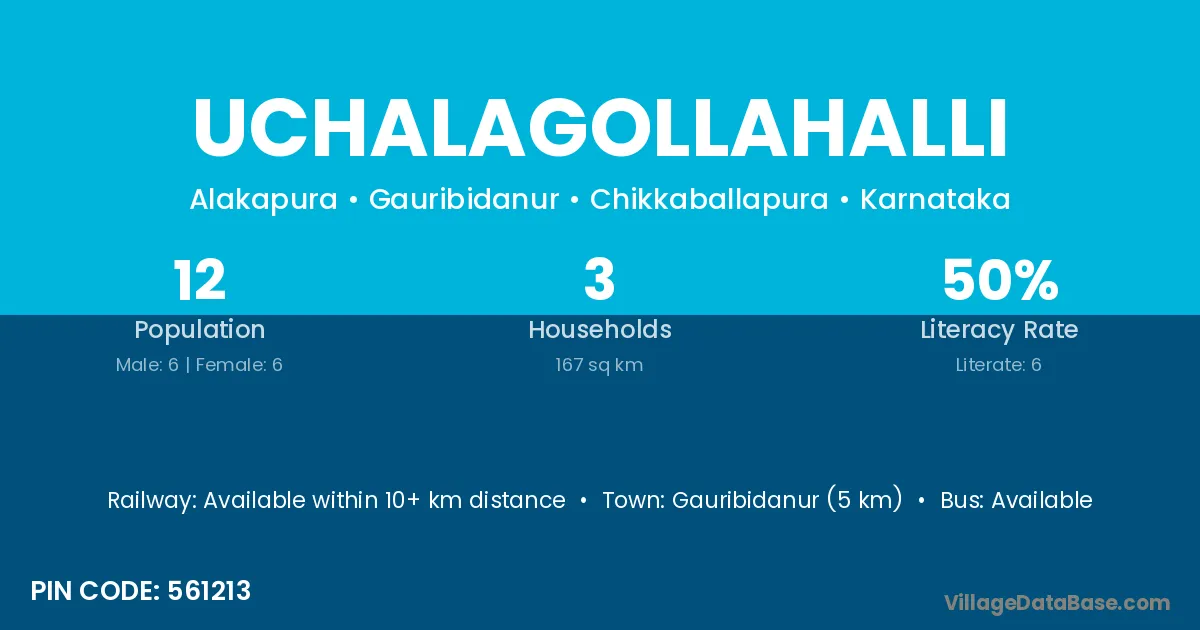 Uchalagollahalli village has a total population of 12 people, of which 6 are males and 6 are females.