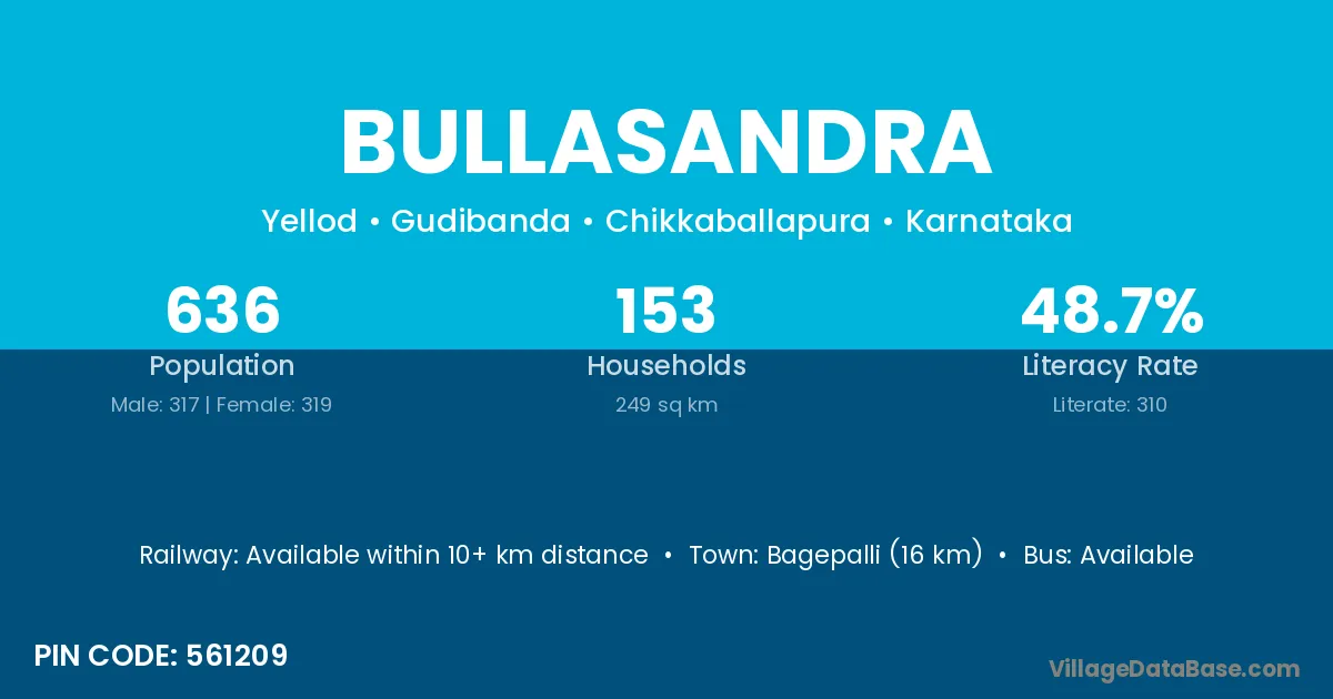 Bagepalli (16 km) is the nearest town to Bullasandra village for major economic activities and is located approximately 16 km away.