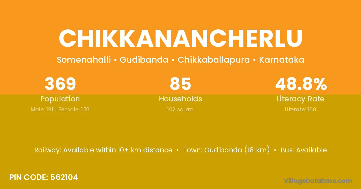 Gudibanda (18 km) is the nearest town to Chikkanancherlu village for major economic activities and is located approximately 18 km away.