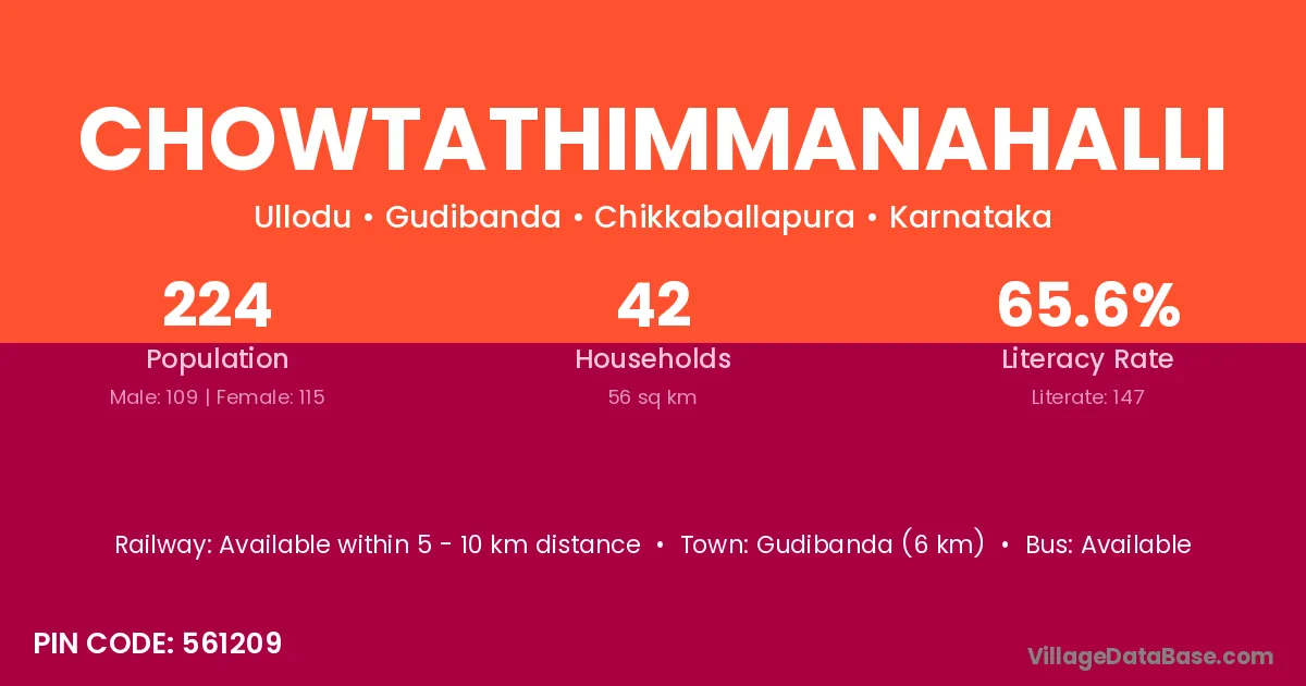 Gudibanda (6 km) is the nearest town to Chowtathimmanahalli village for major economic activities and is located approximately 6 km away.