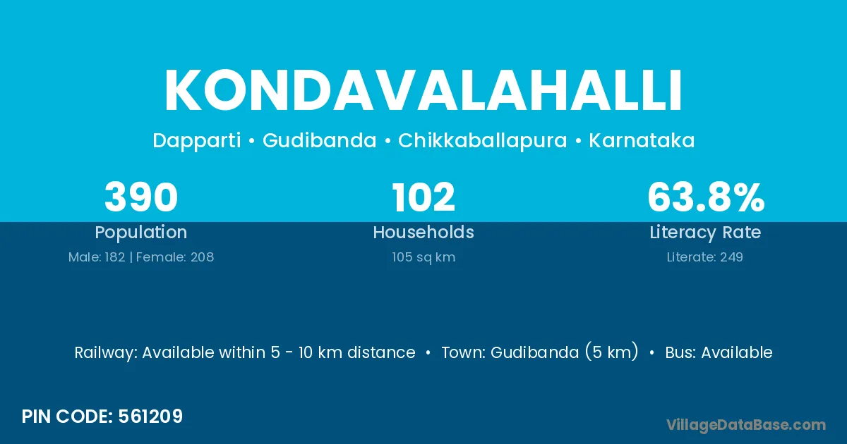 Gudibanda (5 km) is the nearest town to Kondavalahalli village for major economic activities and is located approximately 5 km away.