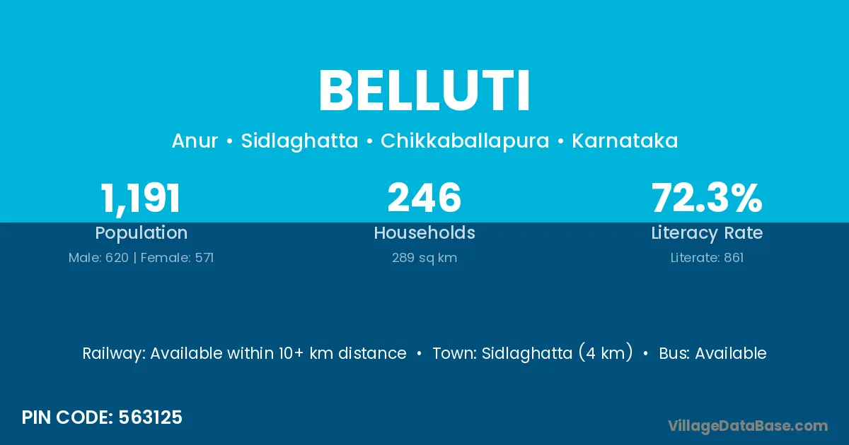 Sidlaghatta (4 km) is the nearest town to Belluti village for major economic activities and is located approximately 4 km away.