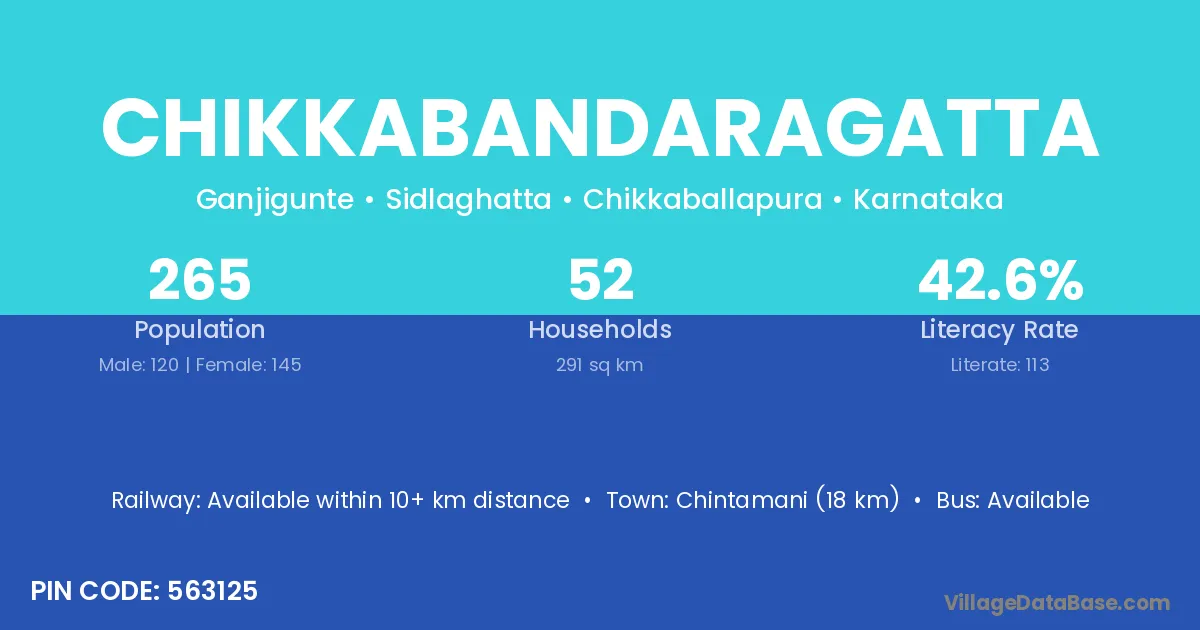 Chintamani (18 km) is the nearest town to Chikkabandaragatta village for major economic activities and is located approximately 18 km away.