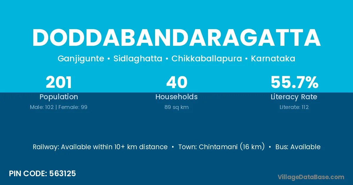Chintamani (16 km) is the nearest town to Doddabandaragatta village for major economic activities and is located approximately 16 km away.