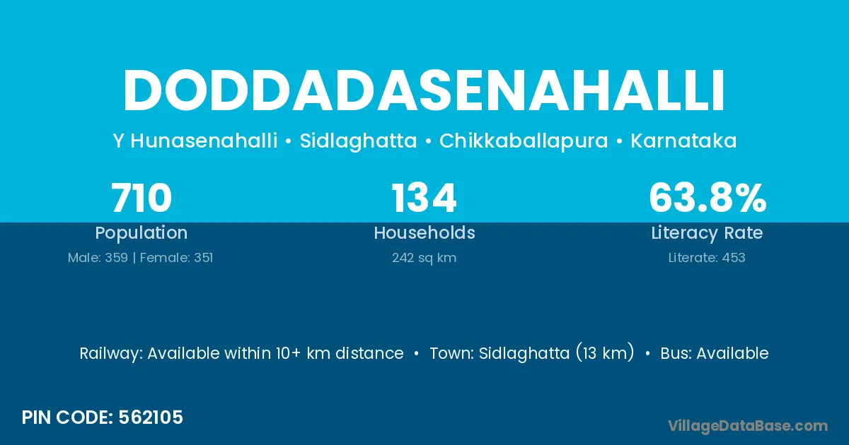 Sidlaghatta (13 km) is the nearest town to Doddadasenahalli village for major economic activities and is located approximately 13 km away.