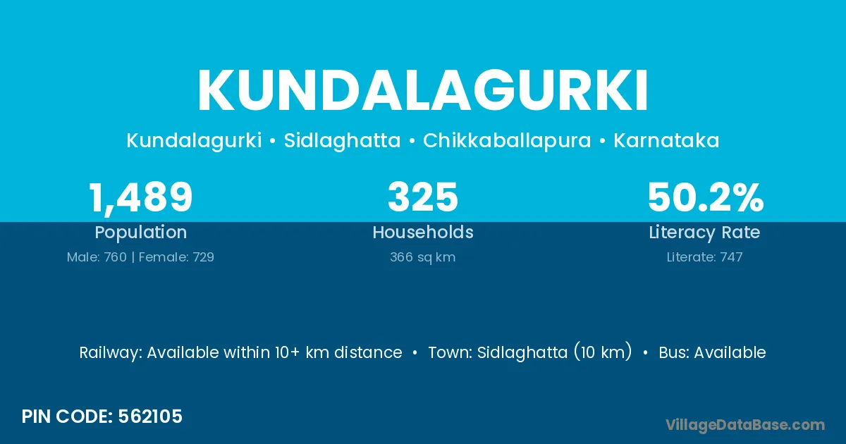 Sidlaghatta (10 km) is the nearest town to Kundalagurki village for major economic activities and is located approximately 10 km away.