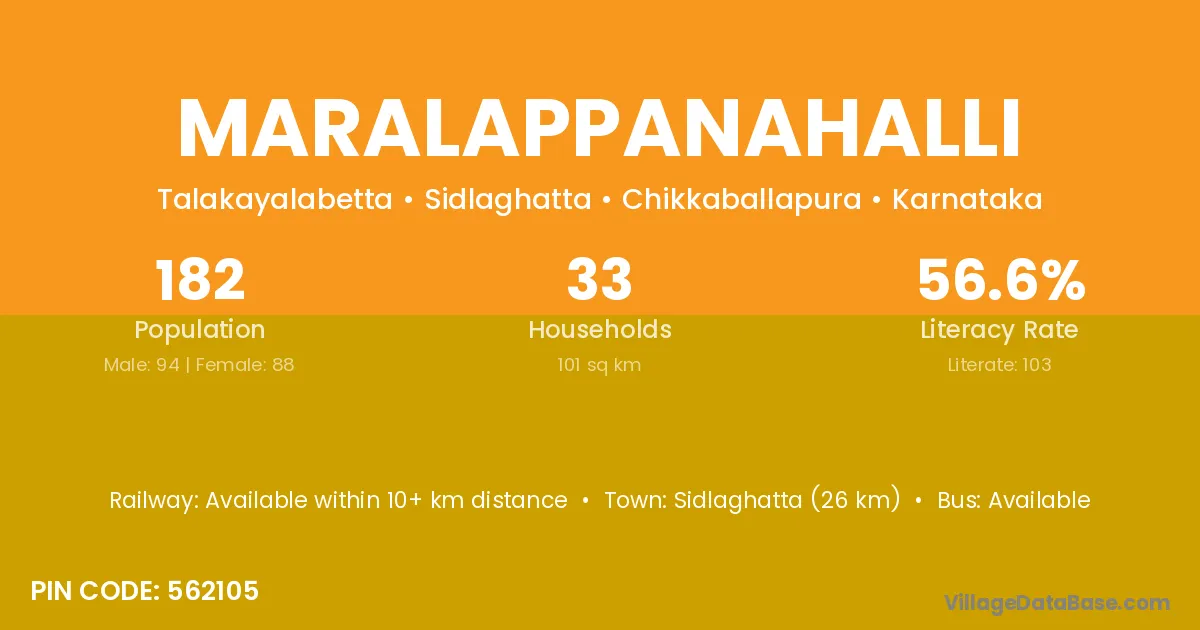 Sidlaghatta (26 km) is the nearest town to Maralappanahalli village for major economic activities and is located approximately 26 km away.