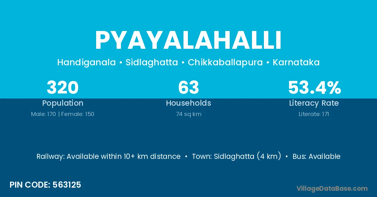 Sidlaghatta (4 km) is the nearest town to Pyayalahalli village for major economic activities and is located approximately 4 km away.