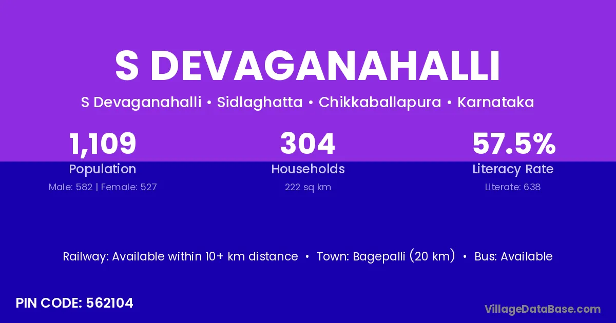 Bagepalli (20 km) is the nearest town to S Devaganahalli village for major economic activities and is located approximately 20 km away.