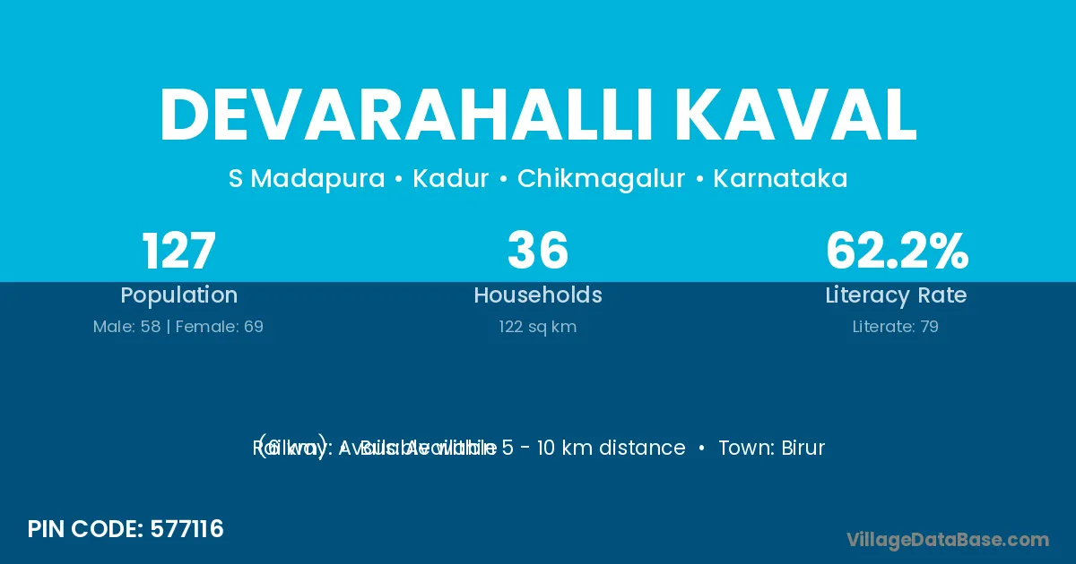 Devarahalli Kaval village has a total population of 127 people, of which 58 are males and 69 are females.