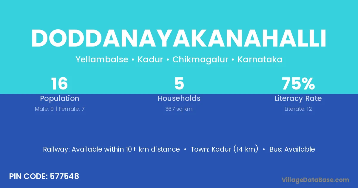 Kadur (14 km) is the nearest town to Doddanayakanahalli village for major economic activities and is located approximately 14 km away.