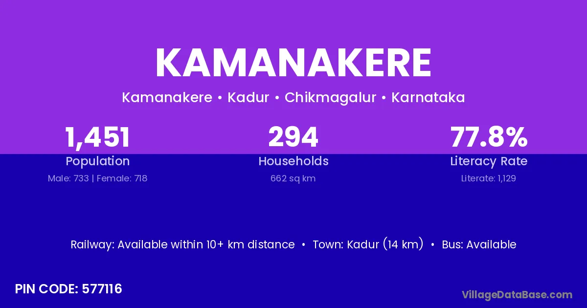 Kadur (14 km) is the nearest town to Kamanakere village for major economic activities and is located approximately 14 km away.
