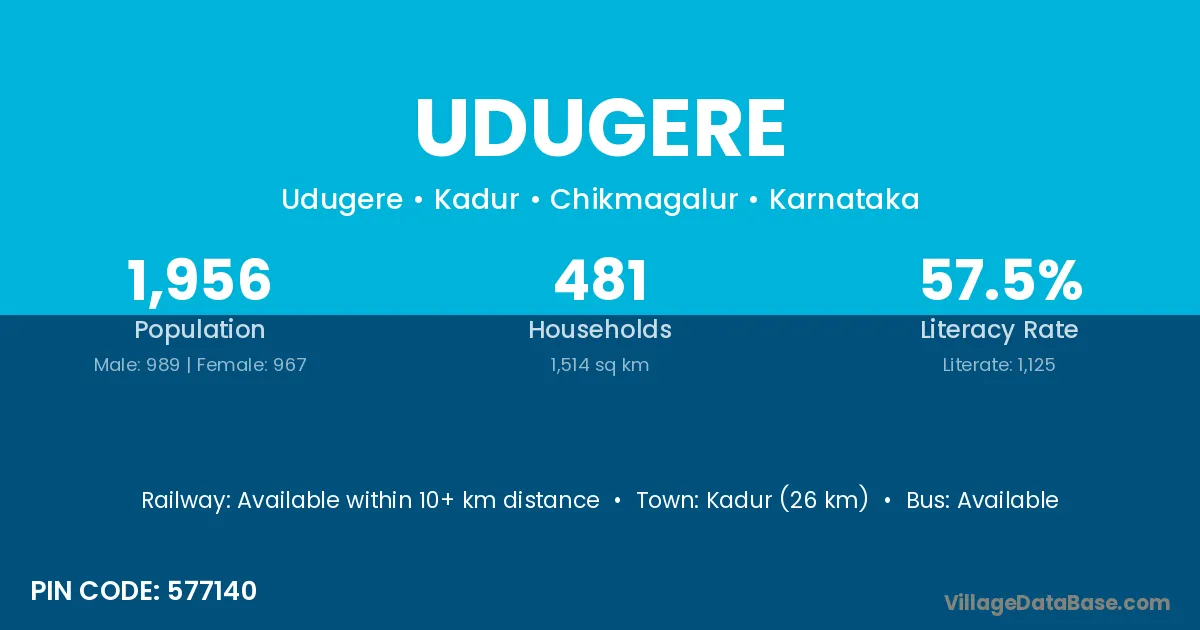 Kadur (26 km) is the nearest town to Udugere village for major economic activities and is located approximately 26 km away.