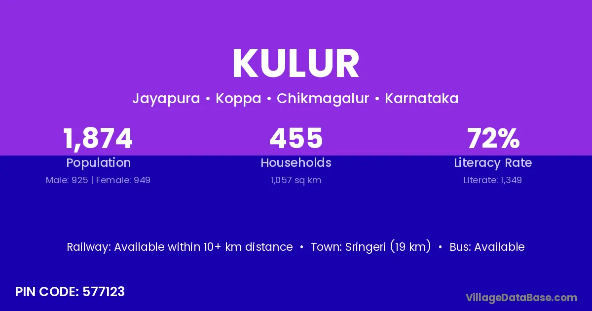Sringeri (19 km) is the nearest town to Kulur village for major economic activities and is located approximately 19 km away.