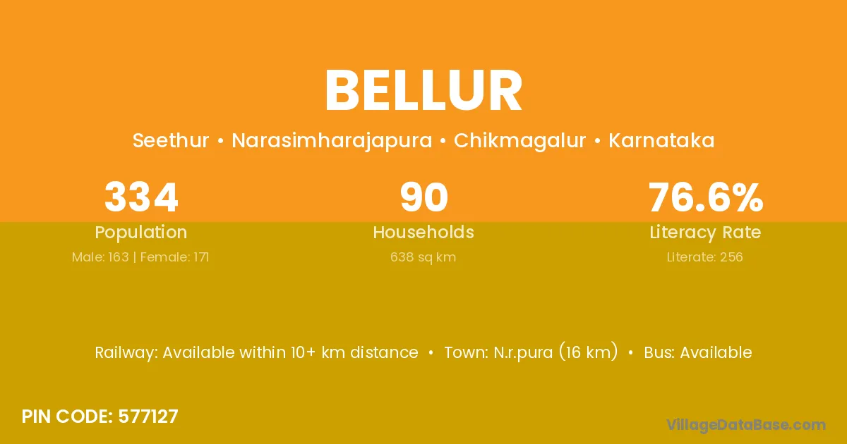 N.r.pura (16 km) is the nearest town to Bellur village for major economic activities and is located approximately 16 km away.