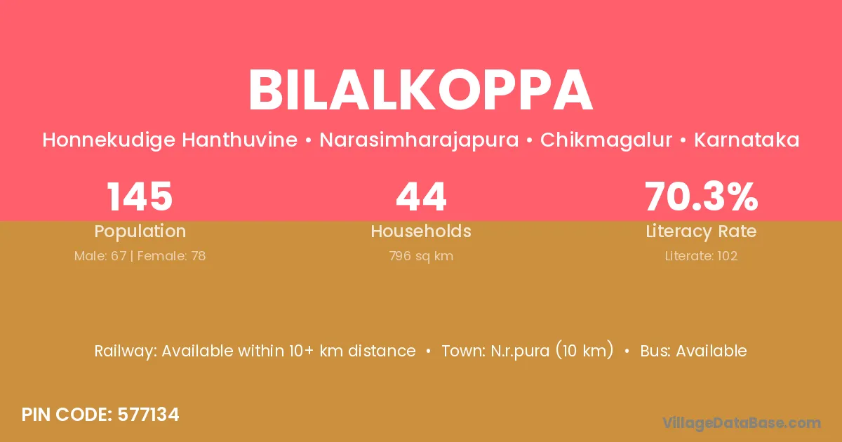 N.r.pura (10 km) is the nearest town to Bilalkoppa village for major economic activities and is located approximately 10 km away.
