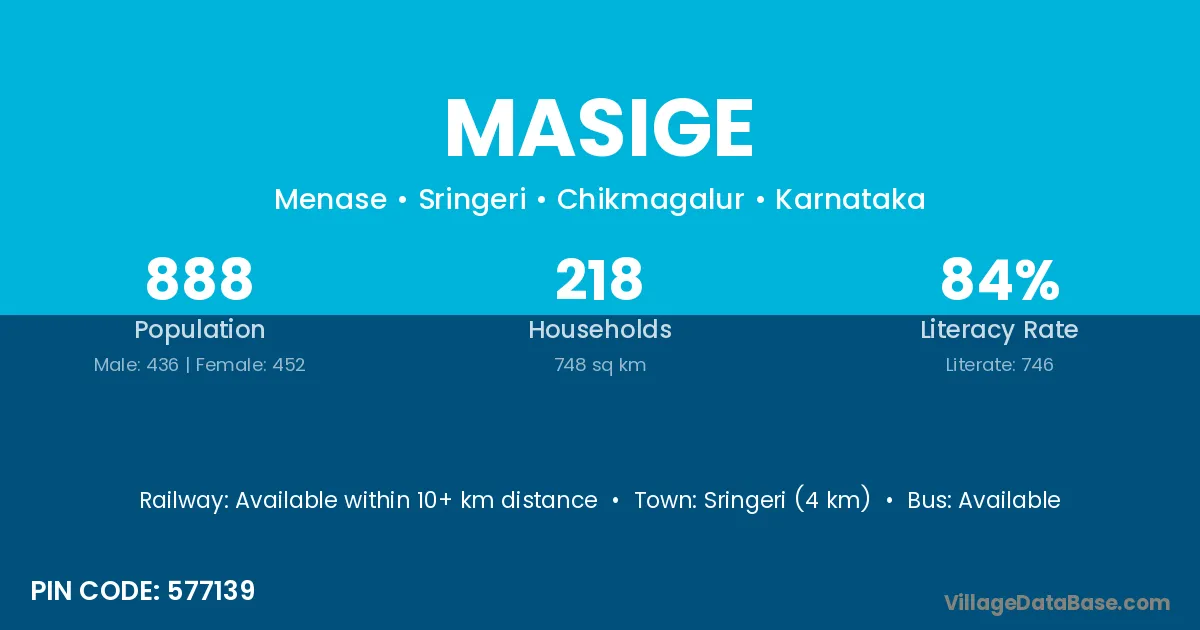 Sringeri (4 km) is the nearest town to Masige village for major economic activities and is located approximately 4 km away.
