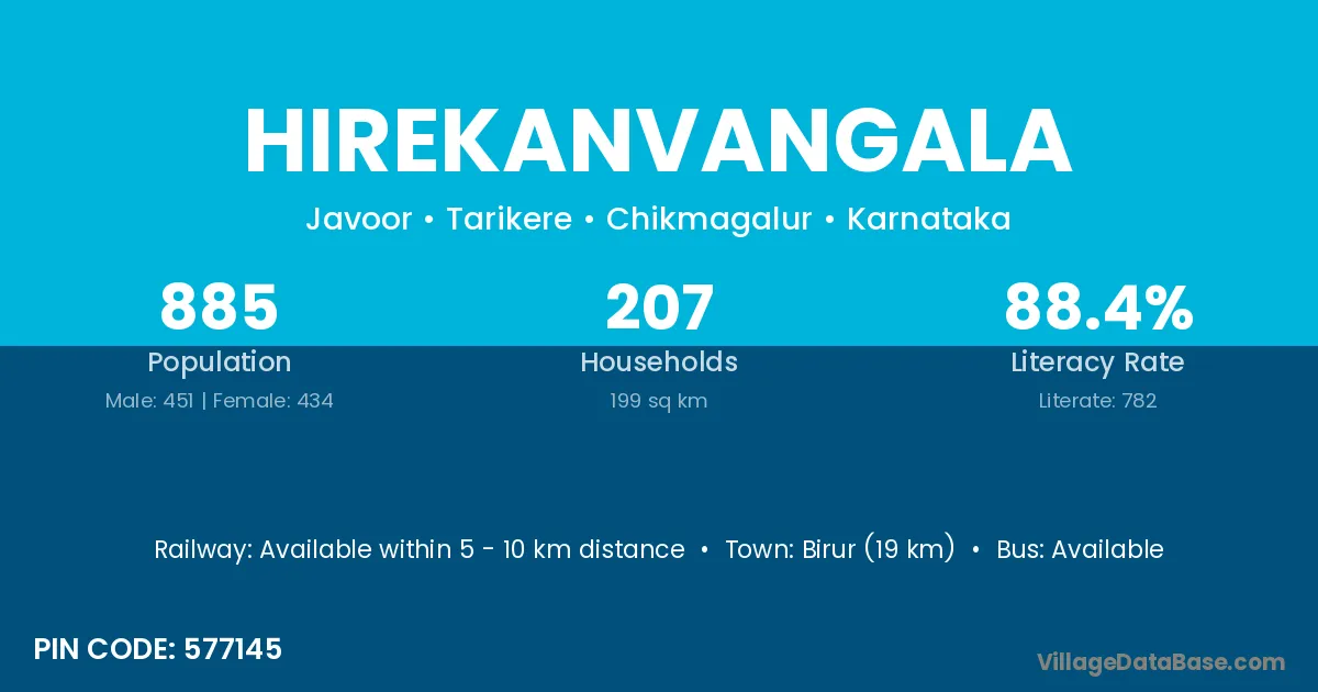 Birur (19 km) is the nearest town to Hirekanvangala village for major economic activities and is located approximately 19 km away.