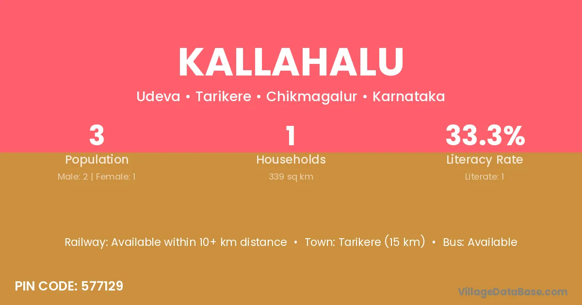 Kallahalu village has a total population of 3 people, of which 2 are males and 1 are females.