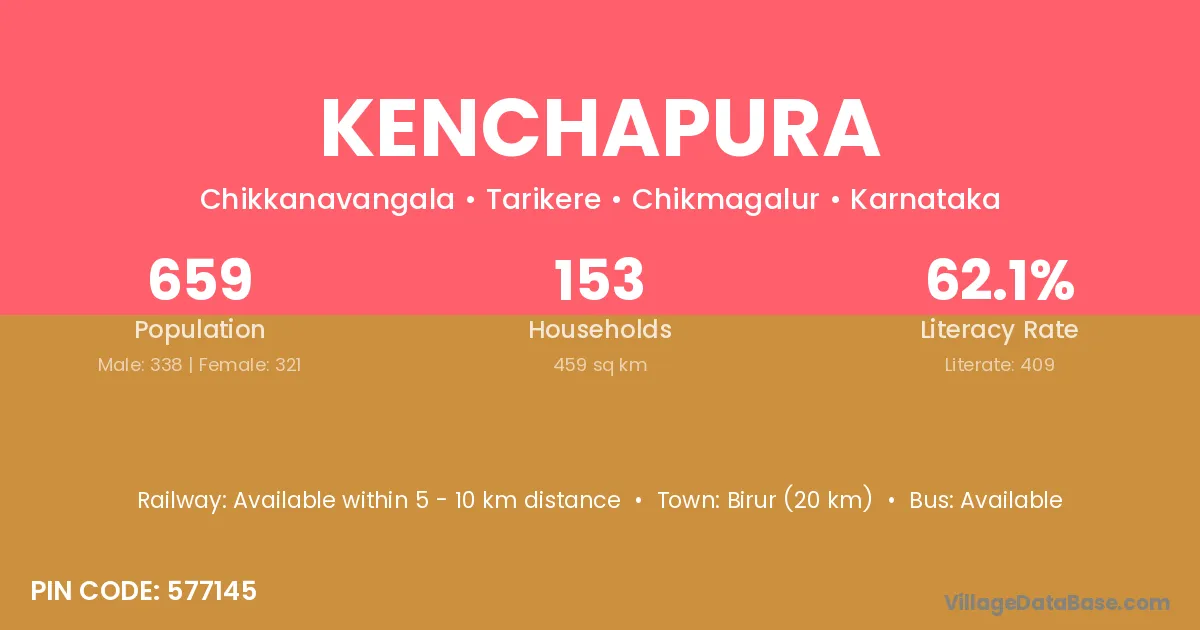 Kenchapura village has a total population of 659 people, of which 338 are males and 321 are females.
