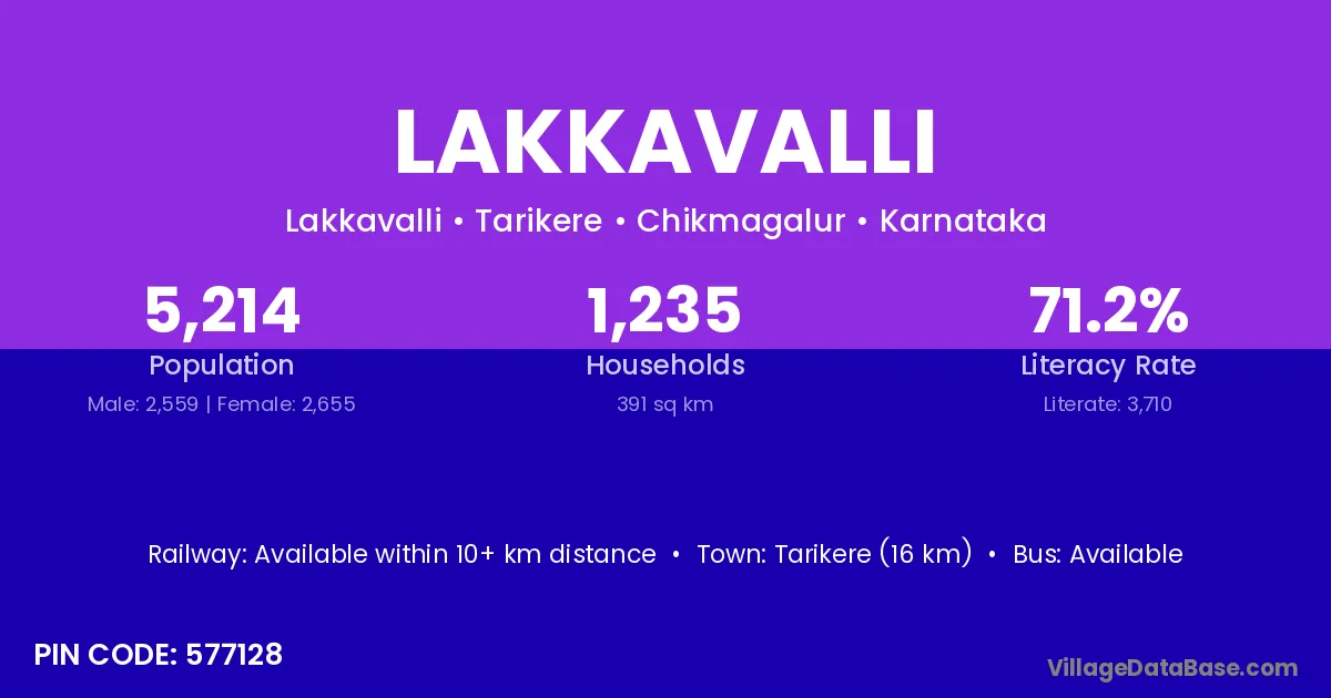 Tarikere (16 km) is the nearest town to Lakkavalli village for major economic activities and is located approximately 16 km away.