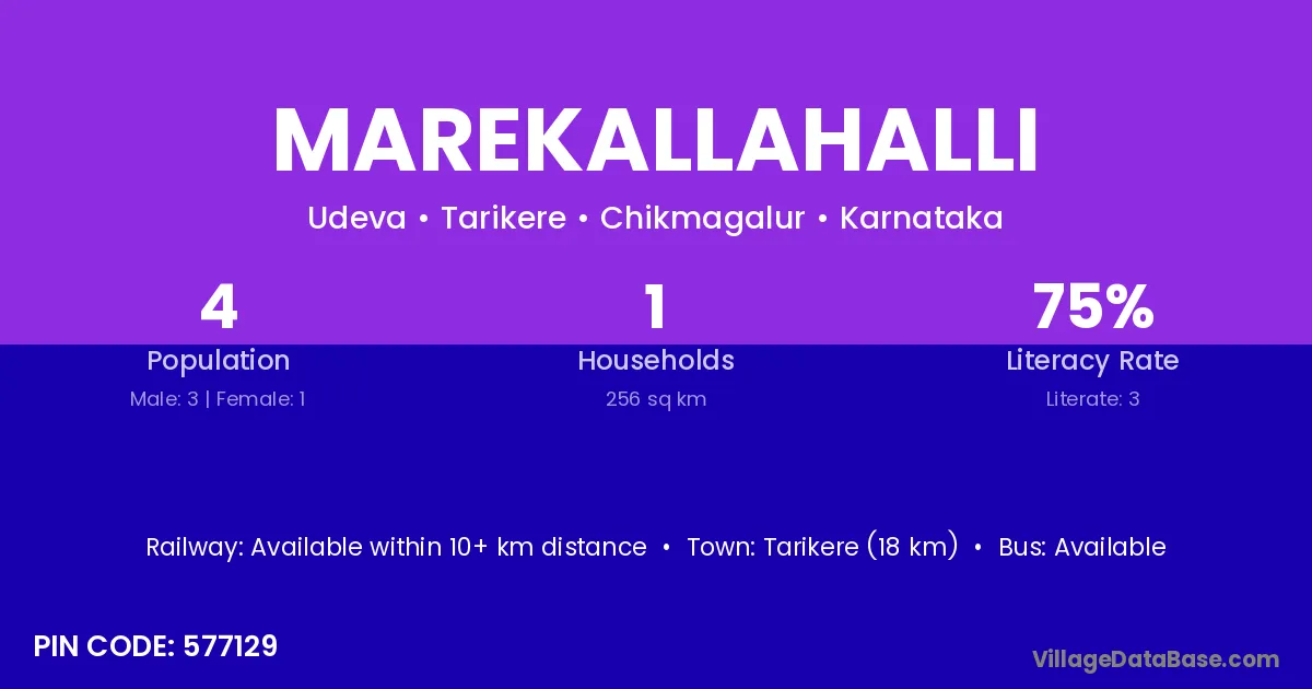 Marekallahalli village has a total population of 4 people, of which 3 are males and 1 are females.
