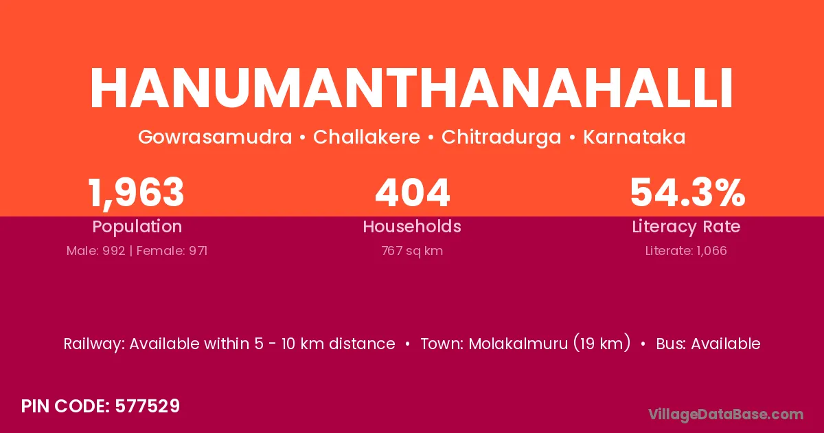 Hanumanthanahalli village has a total population of 1,963 people, of which 992 are males and 971 are females.