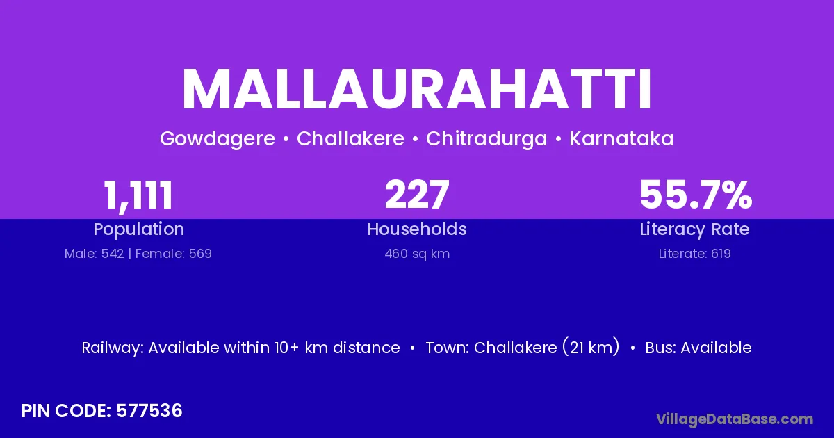 Challakere (21 km) is the nearest town to Mallaurahatti village for major economic activities and is located approximately 21 km away.