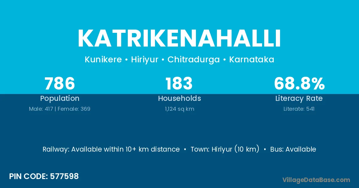 Katrikenahalli village has a total population of 786 people, of which 417 are males and 369 are females.
