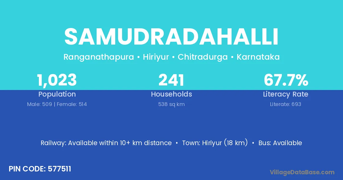 Samudradahalli village has a total population of 1,023 people, of which 509 are males and 514 are females.