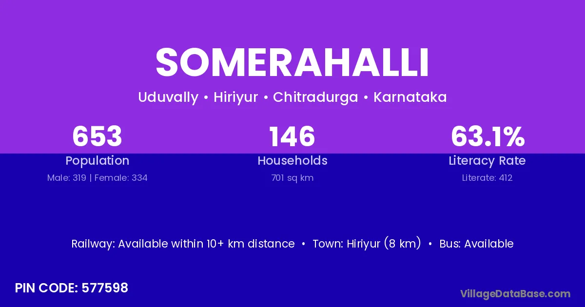 Somerahalli village has a total population of 653 people, of which 319 are males and 334 are females.