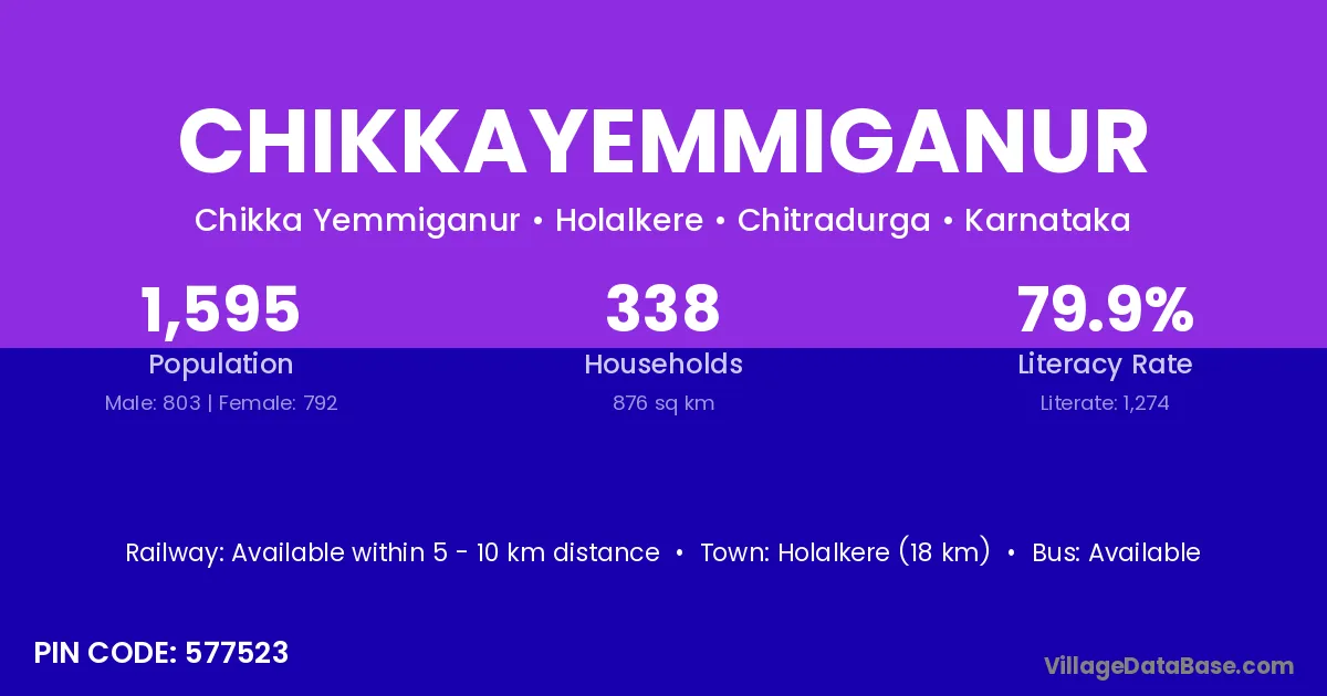 Chikkayemmiganur village has a total population of 1,595 people, of which 803 are males and 792 are females.