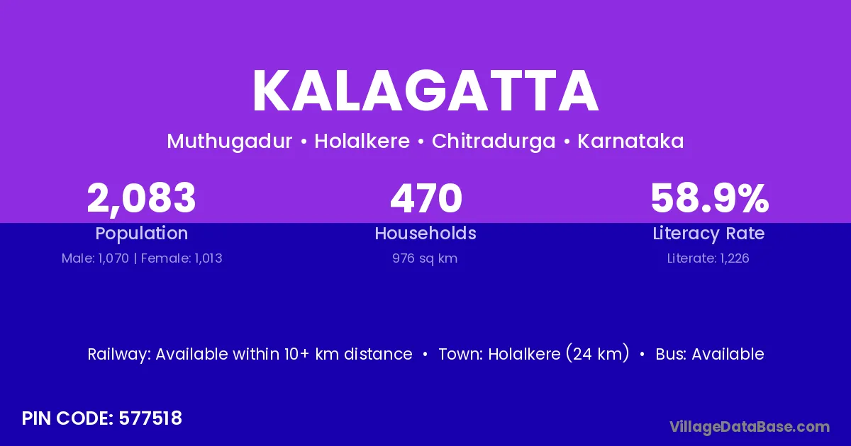 Holalkere (24 km) is the nearest town to Kalagatta village for major economic activities and is located approximately 24 km away.