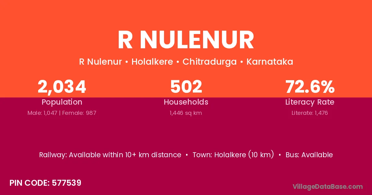 Holalkere (10 km) is the nearest town to R Nulenur village for major economic activities and is located approximately 10 km away.