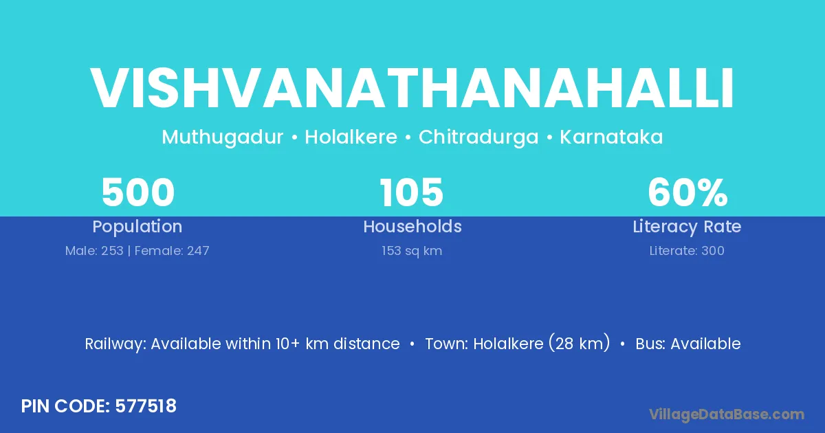 Vishvanathanahalli village has a total population of 500 people, of which 253 are males and 247 are females.