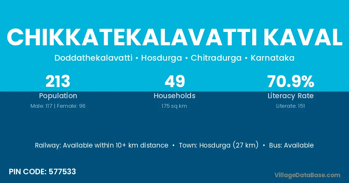 Hosdurga (27 km) is the nearest town to Chikkatekalavatti Kaval village for major economic activities and is located approximately 27 km away.