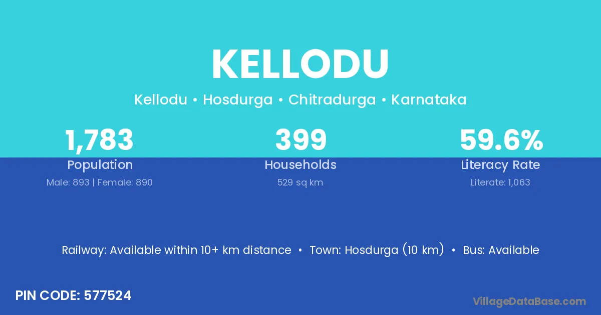 Hosdurga (10 km) is the nearest town to Kellodu village for major economic activities and is located approximately 10 km away.