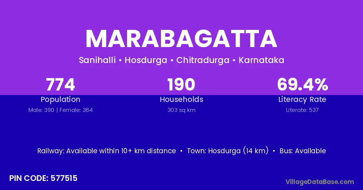 Hosdurga (14 km) is the nearest town to Marabagatta village for major economic activities and is located approximately 14 km away.