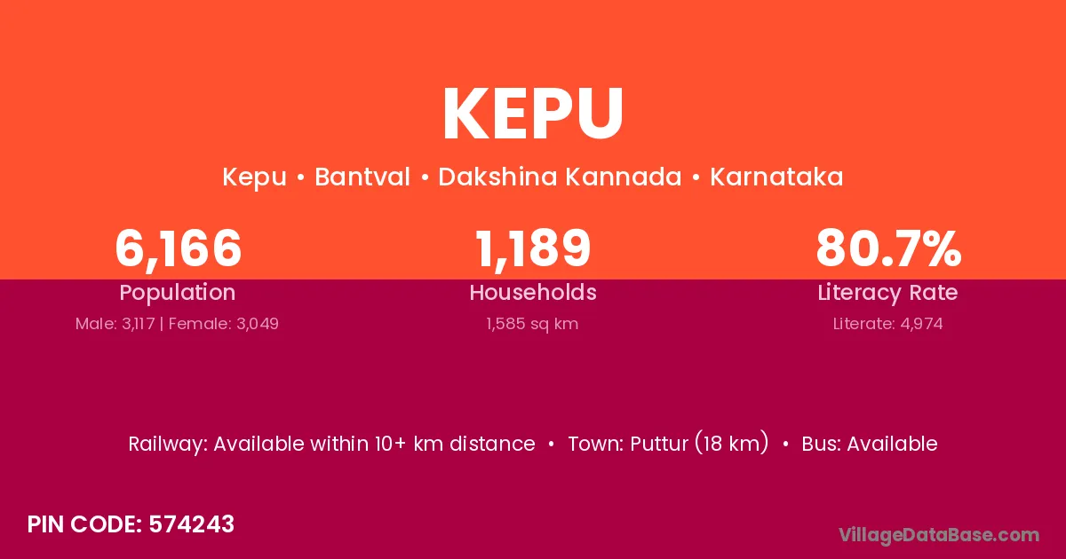 Puttur (18 km) is the nearest town to Kepu village for major economic activities and is located approximately 18 km away.