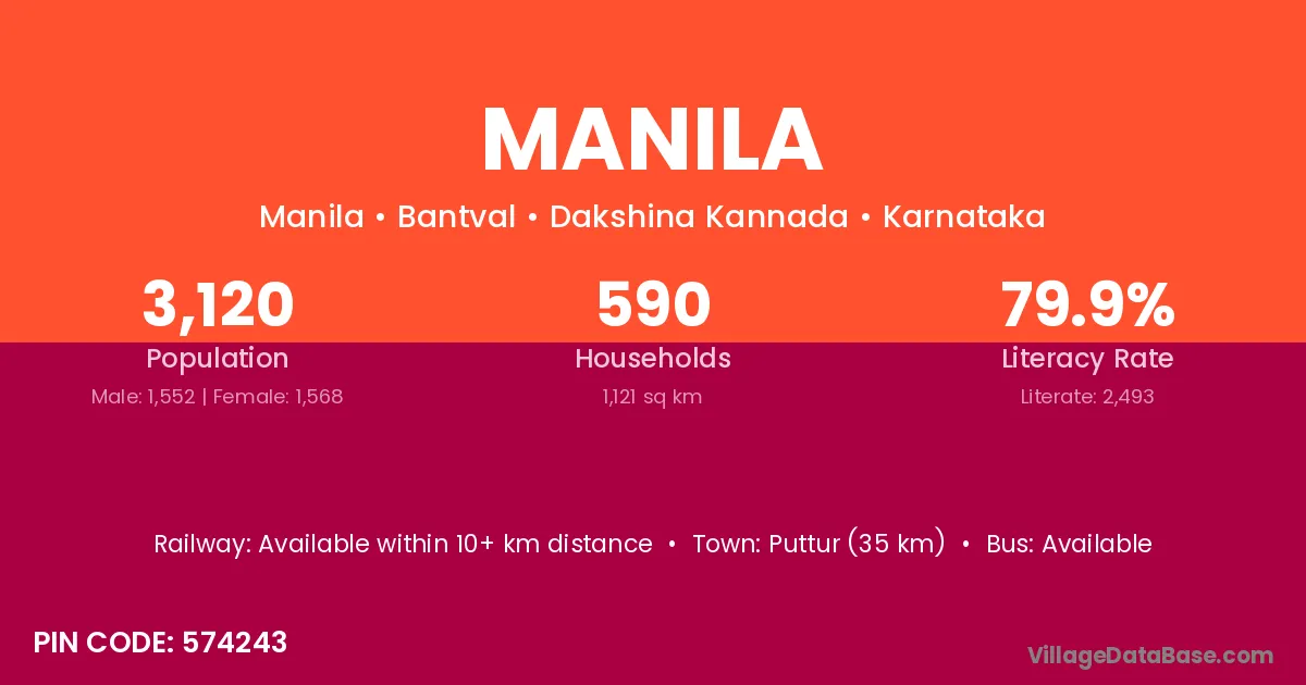 Puttur (35 km) is the nearest town to Manila village for major economic activities and is located approximately 35 km away.