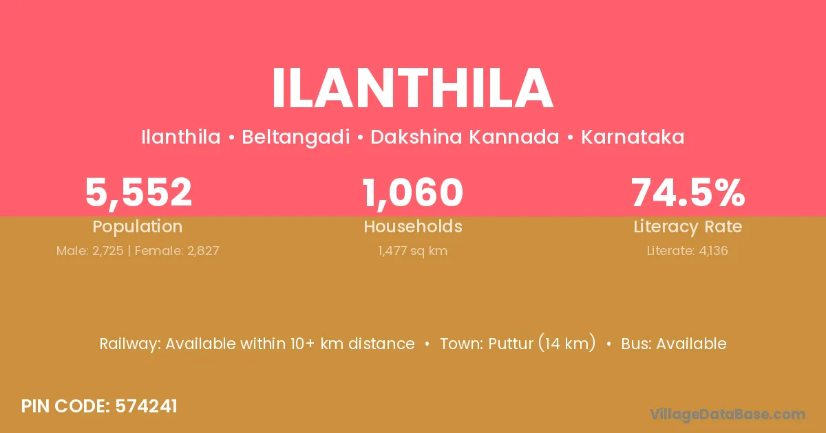 According to Census 2011 information, the village code of Ilanthila village is 574241.