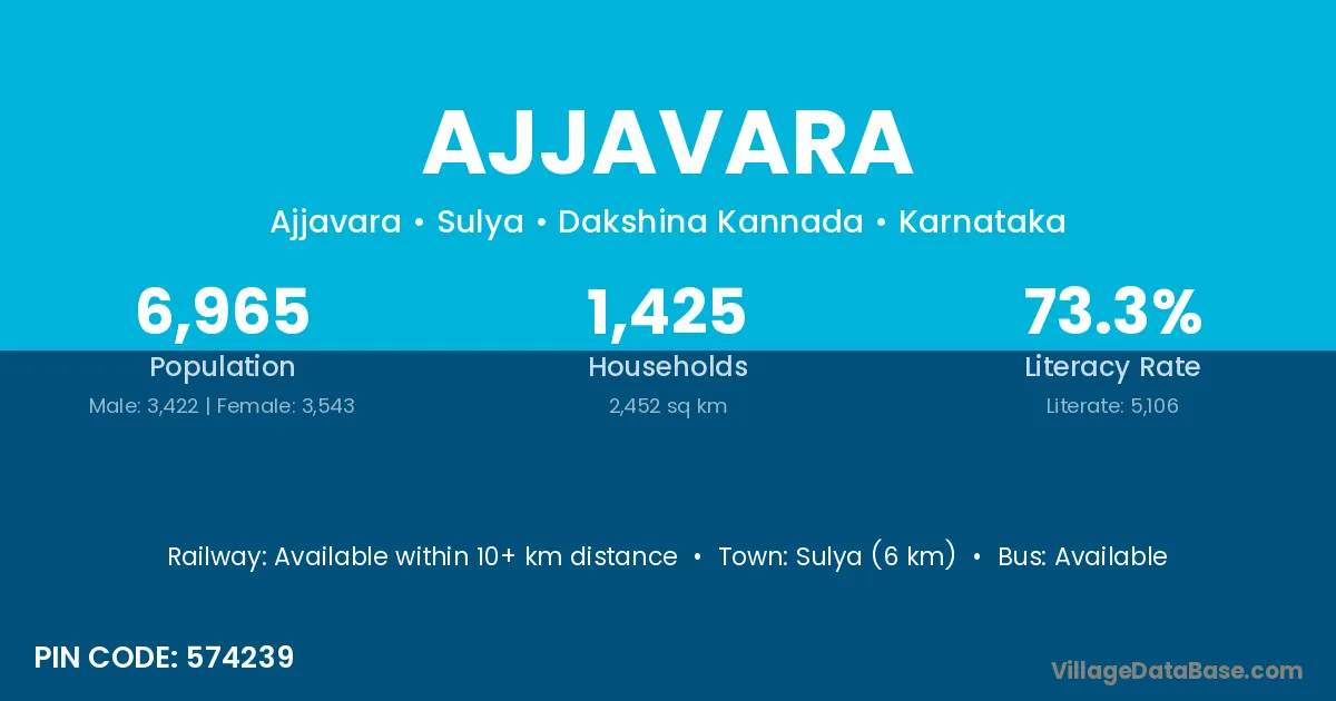 Ajjavara village has a total population of 6,965 people, of which 3,422 are males and 3,543 are females.