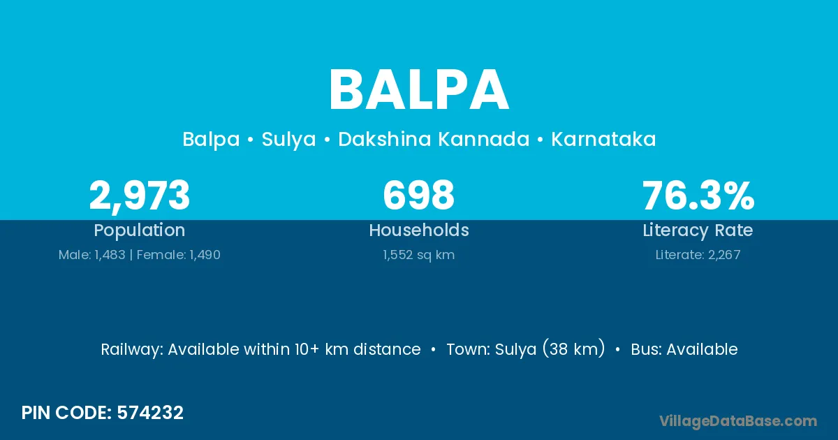 Sulya (38 km) is the nearest town to Balpa village for major economic activities and is located approximately 38 km away.