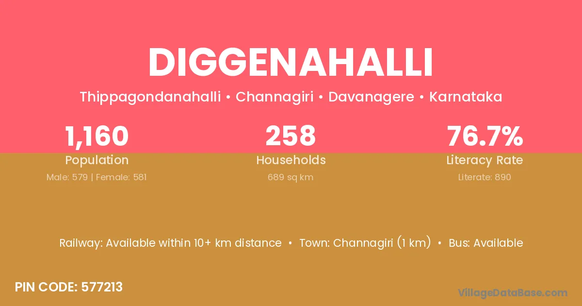 Diggenahalli village has a total population of 1,160 people, of which 579 are males and 581 are females.