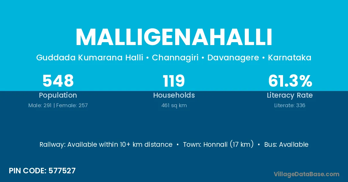 Malligenahalli village has a total population of 548 people, of which 291 are males and 257 are females.