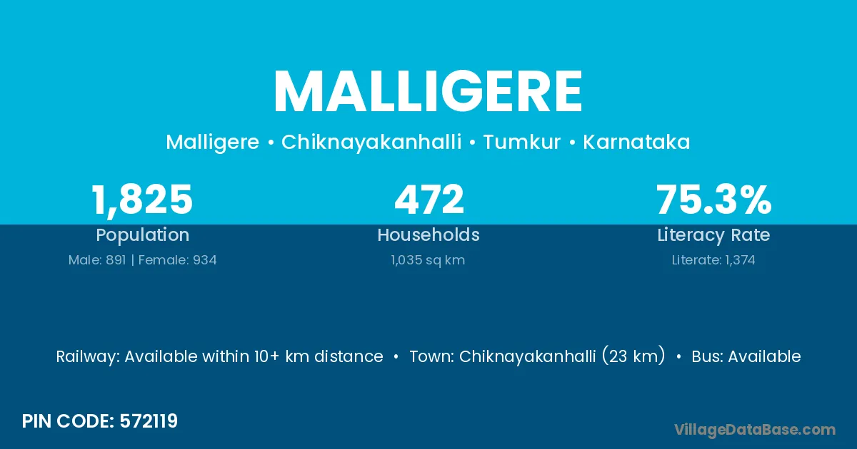 Channagiri (5 km) is the nearest town to Malligere village for major economic activities and is located approximately 5 km away.